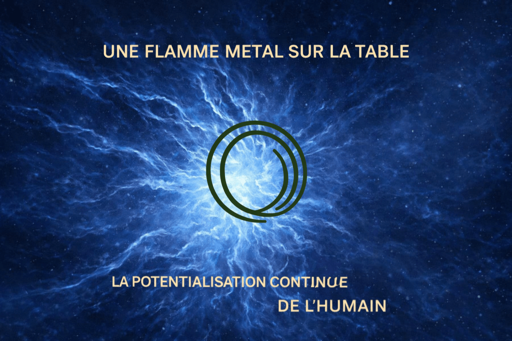 UNE FLAMME MÉTAL SUR LA TABLE est une œuvre de réflexion métaphysique qui interroge la relation entre l’esprit, la matière et la loi.